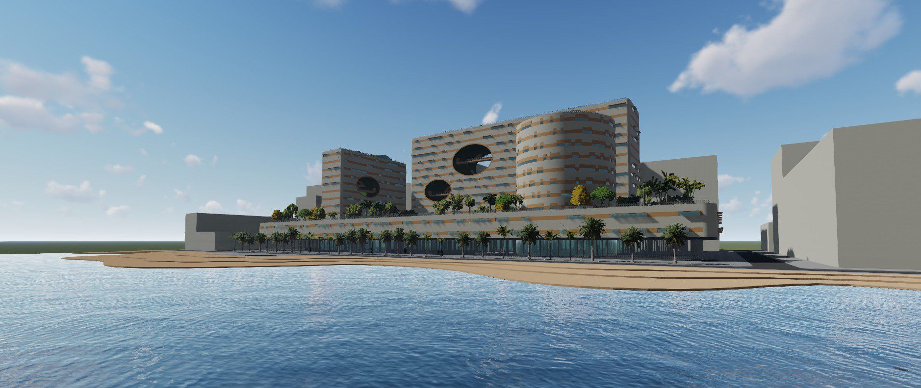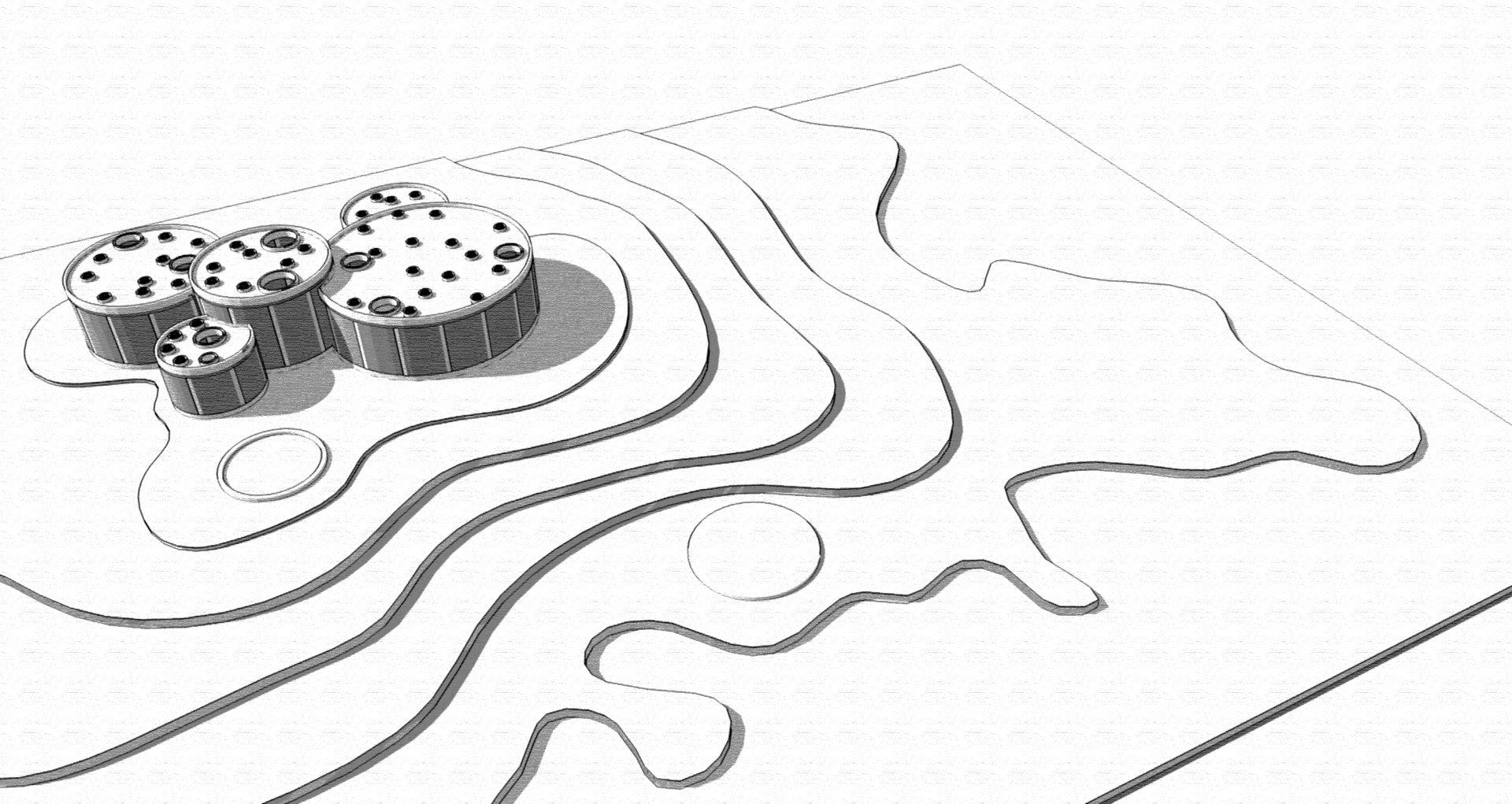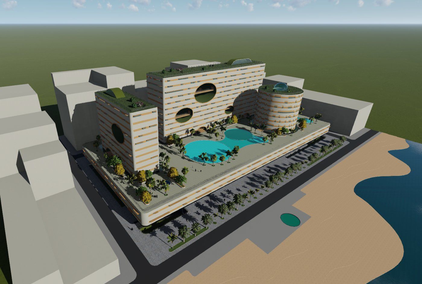 Proyecto conceptual propio acerca del planteamiento de un sistema multifuncional constituido por sistema hotelero, residencial, comercial, oficinas, parques + piscinas y aparcamientos.