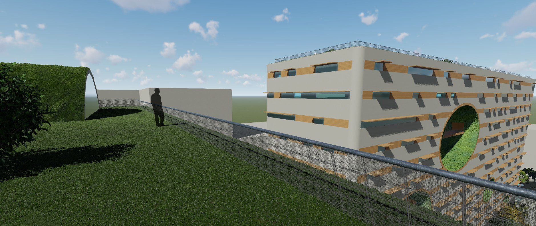 Todo el complejo se basa en el dinamismo arquitectónico y la incorporación de sistemas ecológicos que integran la naturaleza dentro de la Arquitectura.