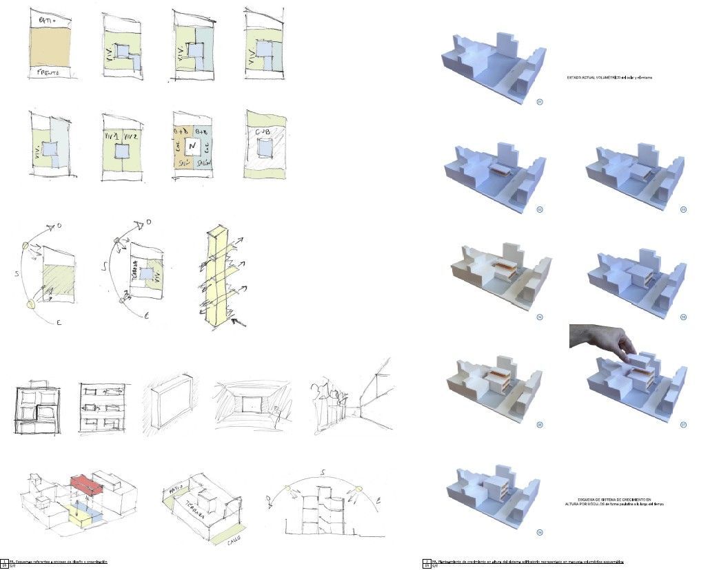 Proyecto de edificio de apartamentos que cuenta con la premisa básica de la construcción paulatina a lo largo del tiempo, ejecutándose en una primera fase la planta baja y el 50% de la planta primera, y en una segunda fase culminar el total de las 3 plantas sobre rasante que permite la